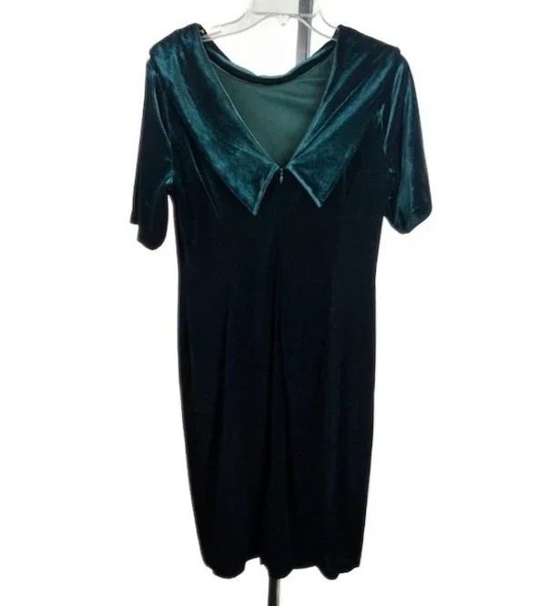 New Adrianna Papell Deep Emerald Green Velvet Roll Collar Sheath Dress Size 10