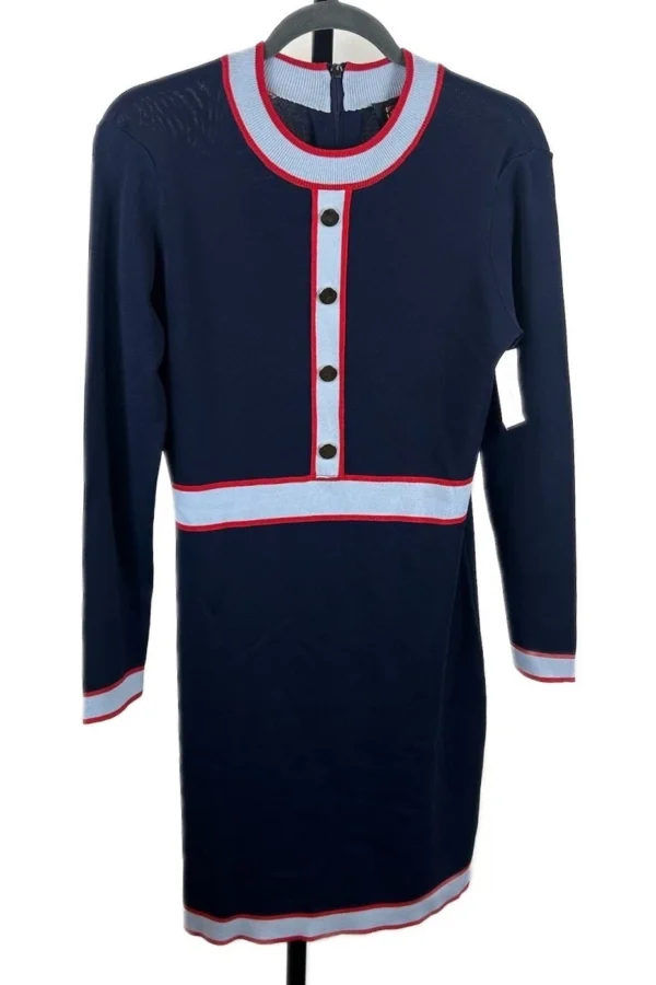 New Alexia Admor New York Blue Red Knit Sweater Dress Career Size Large
