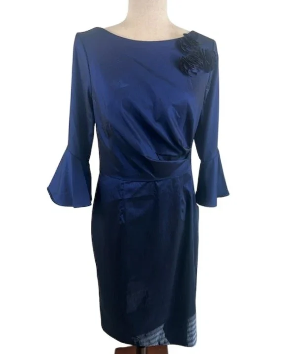 New Alex Evenings Navy Blue Cocktail Party Dress Sheath Flared Sleeves Size 10