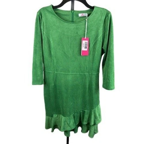 New Aryeh Green UltraSuede Tiered Ruffle Hem Long Sleeve Mini Dress Size Large