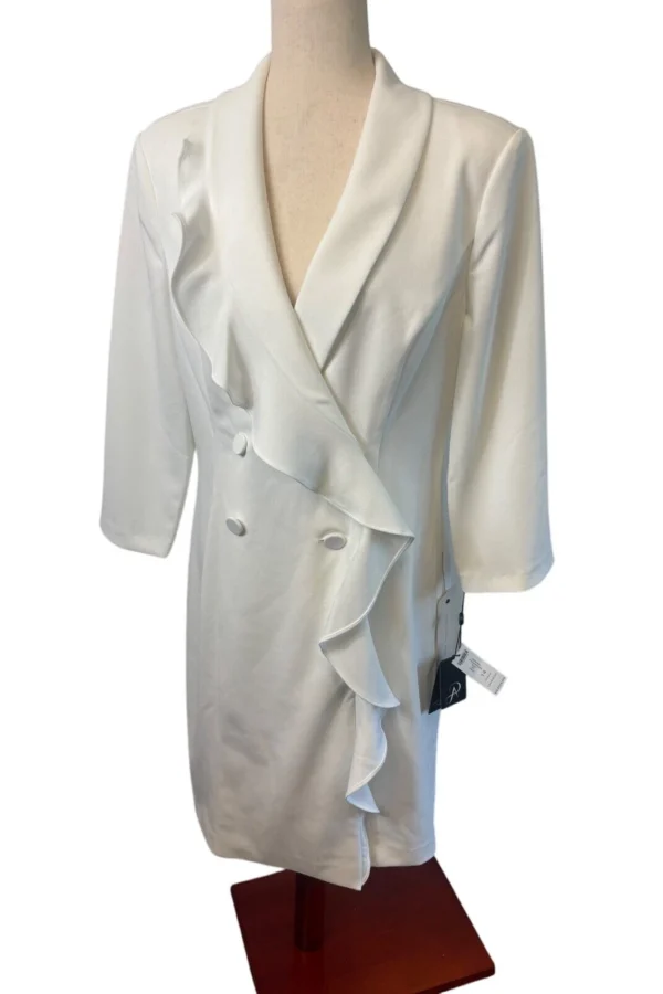 New Adrianna Papell Ruffle Trim Blazer Tuxedo Dress Ivory White Women's Size 14