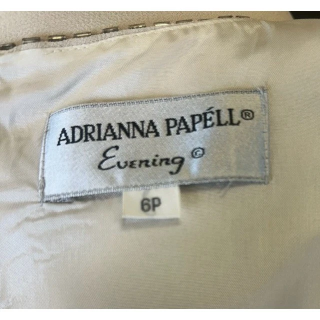 Stunning and like new! Elegance arrives in this sophisticated Adrianna Papell Evening dress set, a vision of understated grace. The ensemble features a tailored top with delicate scalloped trim, paired with a beautifully draped skirt that flatters the figure. The soft beige hue exudes timeless charm, making it a versatile addition to any wardrobe. This set offers a polished and refined look, perfect for making a lasting impression. Ideal for a formal event, a professional setting, or an elegant evening out, this dress set ensures you’ll always be dressed to impress.