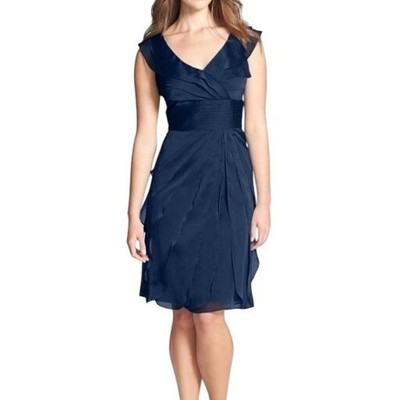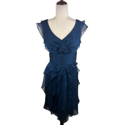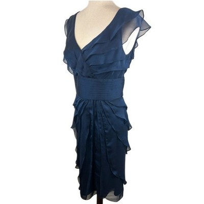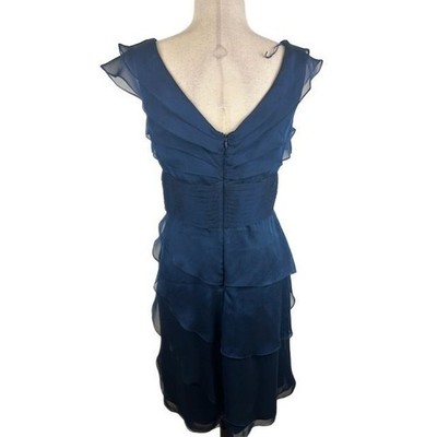 Keywords: Adrianna Papell, blue dress, ruffled dress, sleeveless dress, cocktail dress, party dress, formal dress, size 6, wedding guest dress, evening gown, special occasion dress