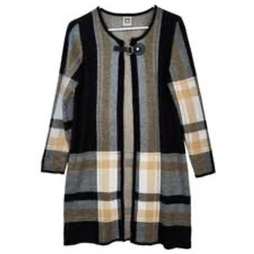 Elegant black floral lace cardigan with delicate sequin embellishments. This refined layer features an open-front design with a tie detail at the empire waist. The delicate floral pattern adds a touch of femininity, while the subtle sequins catch the light for a hint of sparkle. This piece is fully lined with a camisole and has 3/4 sleeves, making it versatile for various occasions. Perfect for a cocktail party, evening event, or a special date night.