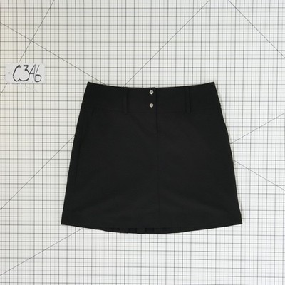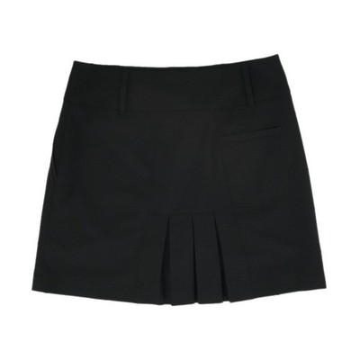 This Annika by Cutter & Buck golf skort measures approximately 16.5 inches in length. This performance piece features a flat front with a double-snap and zip fly closure, belt loops, and a functional back pocket. The back is detailed with a pleated kick panel for ease of movement on the course. Crafted from a breathable polyester and spandex blend, it offers both comfort and a polished athletic look.