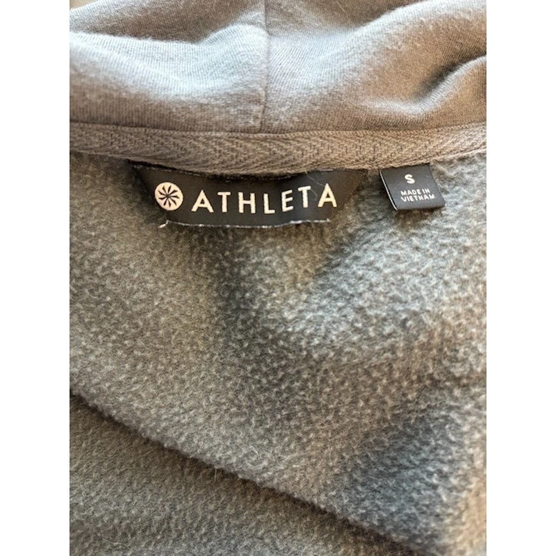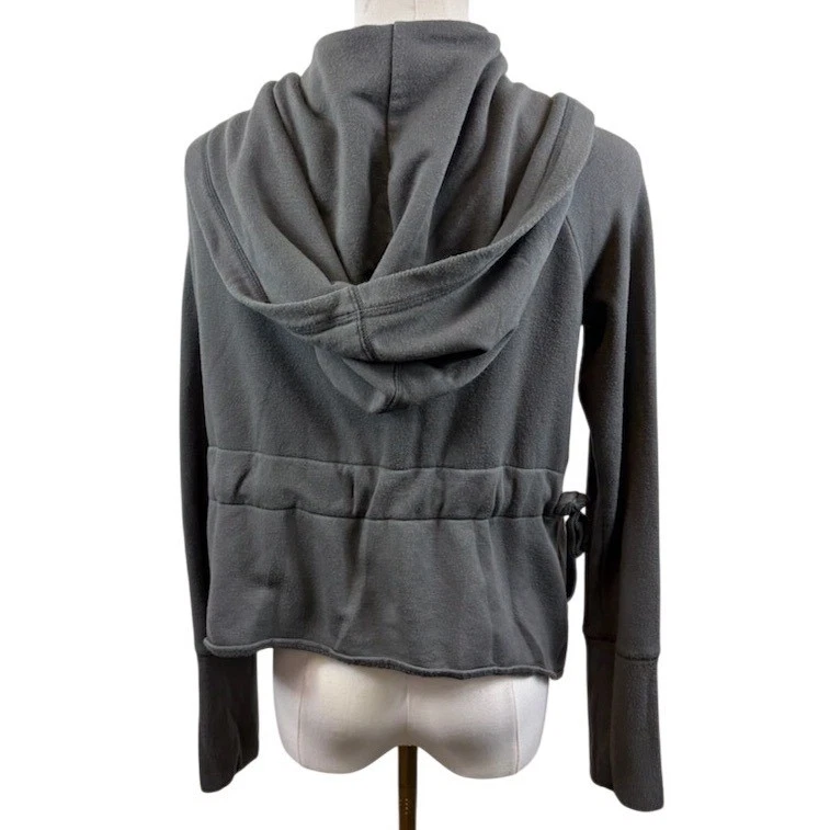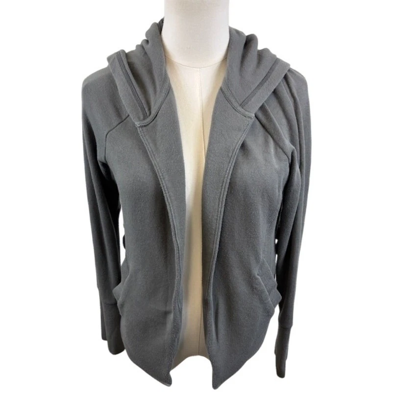 Elevate your athleisure wardrobe with this versatile Athleta hoodie. A cascade of soft, heathered gray fabric gracefully drapes into an open-front silhouette, offering both comfort and style. Design elements include a cozy hood, practical front pockets, and a unique drawstring detail at the back, allowing you to cinch the waist for a flattering, customized fit. This piece strikes the perfect balance between function and fashion. Ideal for layering after a workout, running errands in comfort, or enjoying a casual coffee date.