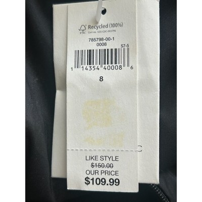Refined silhouette commands attention with its understated elegance! This Banana Republic dress is crafted in classic black, featuring a sleeveless design that transitions seamlessly from the boardroom to a cocktail party. Note the flattering sheath silhouette, accentuated by the unique banded detailing at the waist, creating a visually appealing, figure-enhancing effect. The streamlined design ensures a sophisticated look that's both timeless and modern. Imagine yourself confidently navigating a power lunch or gracefully accepting compliments at an evening soiree. The dress is perfect for a professional setting, a special occasion, or an elegant evening out.