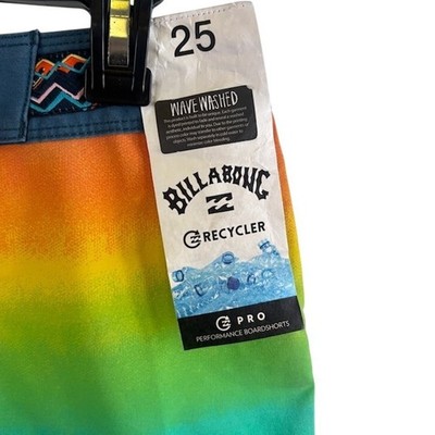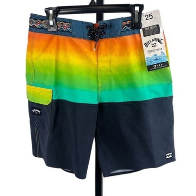 Keywords: Billabong, board shorts, swim trunks, mens swimwear, rainbow, ombre, geometric, surf, beach, pool, summer, recycled, eco friendly, wave washed, fifty50 pro