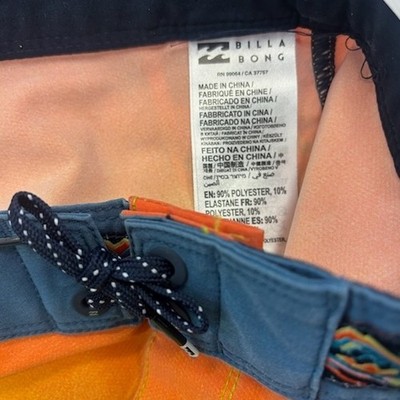 Dive into summer vibes with these Billabong board shorts, a vibrant statement piece for any water enthusiast. A dazzling rainbow gradient cascades down the fabric, transitioning from fiery orange to lush green before settling into a sleek black base. The eye-catching geometric pattern along the waistband adds a touch of tribal flair, while the convenient side pocket offers practicality for stashing essentials. These board shorts are perfect for catching waves at the beach, lounging by the pool, or adding a splash of color to your next outdoor adventure.