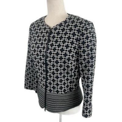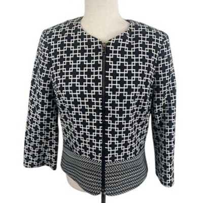 Keywords: Blazer, Jacket, BLACK Saks Fifth Avenue, Geometric, Black and White, Size 8, Womens Blazer, Professional, Career Wear, Statement Piece, Cotton Blend, Herringbone