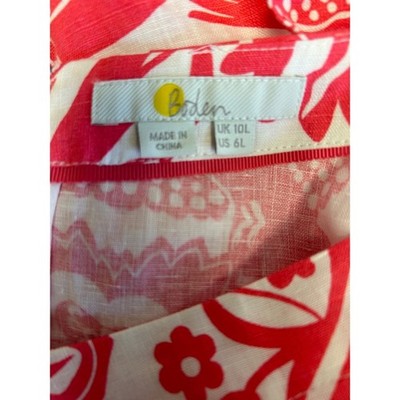 Keywords: Boden, floral skirt, linen skirt, summer skirt, beach skirt, casual skirt, printed skirt, red and white skirt, knee length skirt, womens skirt, vacation skirt, boho skirt, bohemian skirt, uk 10L, us 6L