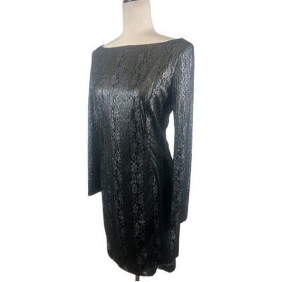 Keywords: Cache dress, black dress, lace dress, metallic dress, long sleeve dress, mini dress, party dress, cocktail dress, evening dress, size 8 dress, womens dress, date night dress