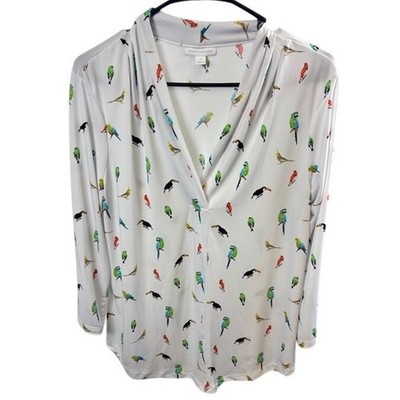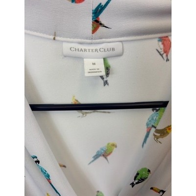 Keywords: Charter Club, blouse, top, womens, bird print, 3/4 sleeve, v neck, white, tropical print, casual blouse, career wear, lightweight top, vacation wear