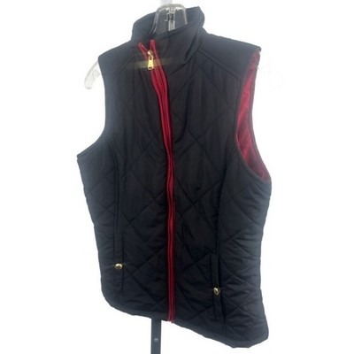 Keywords: Lauren Ralph Lauren vest, women's quilted vest, black puffer vest, sleeveless jacket, red lined vest, zip up vest, petite vest, size small vest, casual vest, outdoor vest, fall fashion, winter layering, sporty vest, designer vest