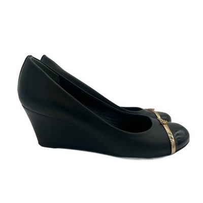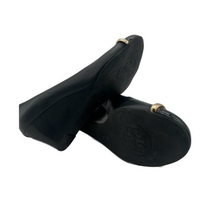 Keywords: Tory Burch, Black, Leather, Wedge Heel, Pumps, Shoes, Gold Logo, Classic, Designer Shoes, Work Shoes, Comfortable Heels, Elegant, Office Wear