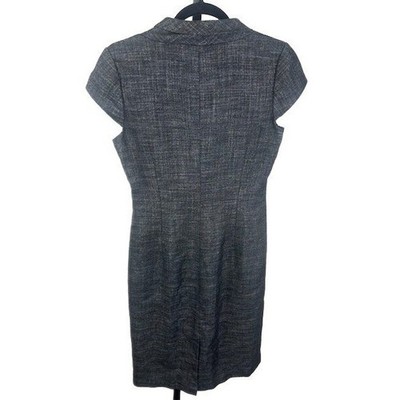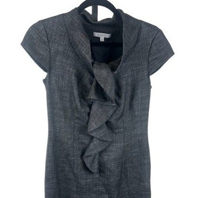 Keywords: Classiques Entier dress, gray dress, ruffle front dress, cocktail dress, career dress, work dress, party dress, size 4 dress, sheath dress, womens dress, formal dress, event dress, cap sleeve dress, high neckline dress