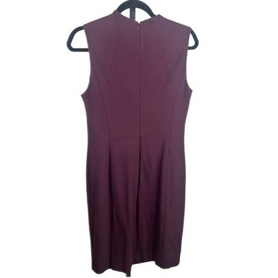 Keywords: Classiques Entier dress, plum dress, embroidered dress, mock neck dress, sleeveless dress, sheath dress, work dress, professional dress, special occasion dress, women's dress size 12, business casual dress, elegant dress, zipper detail dress