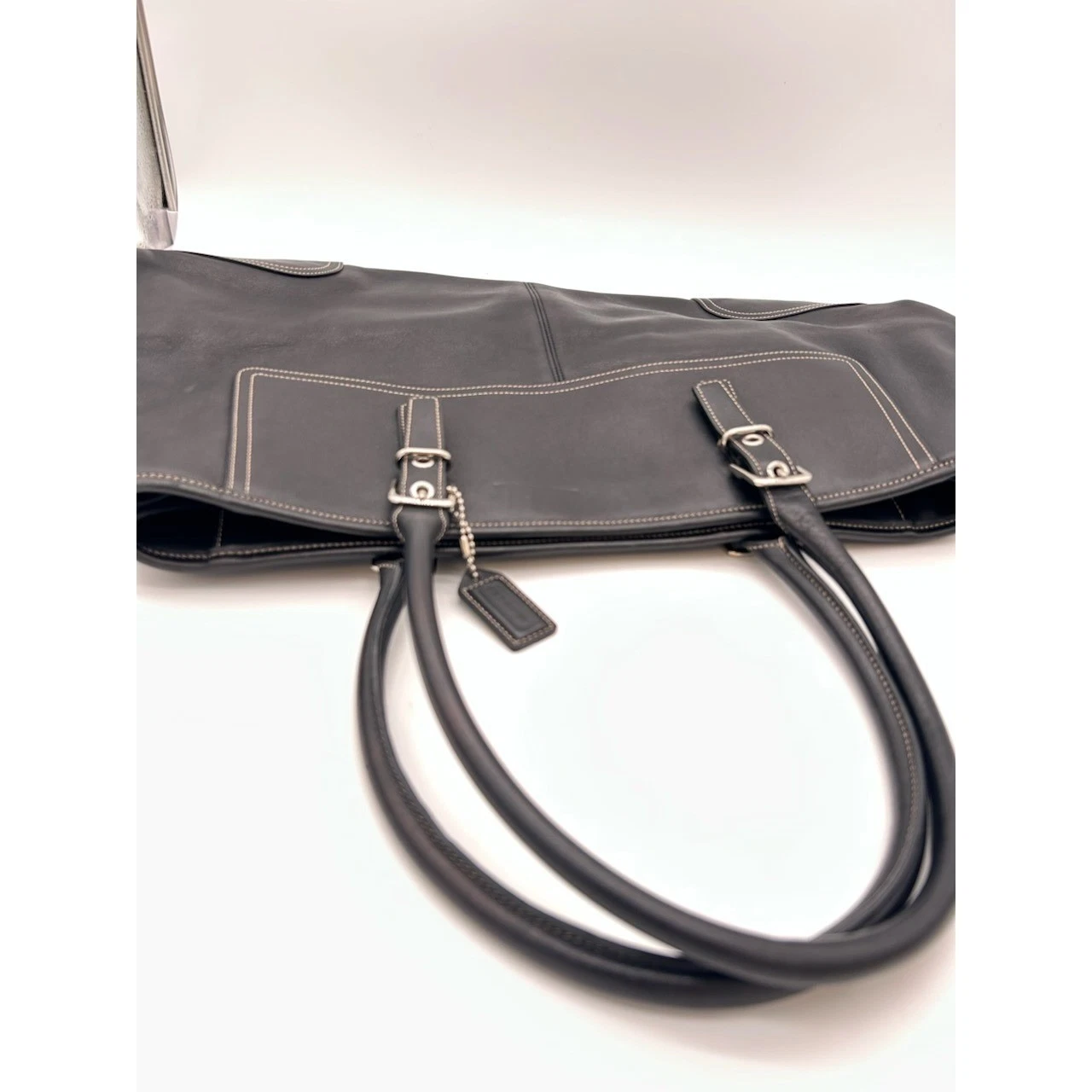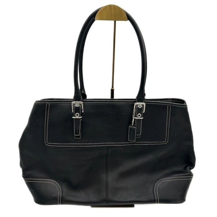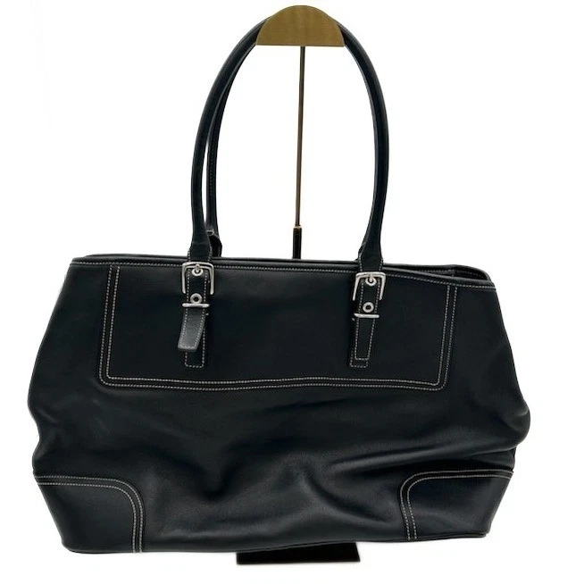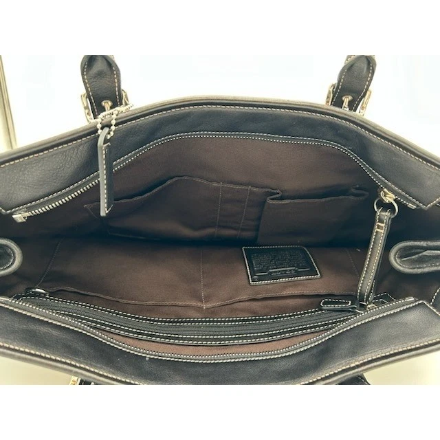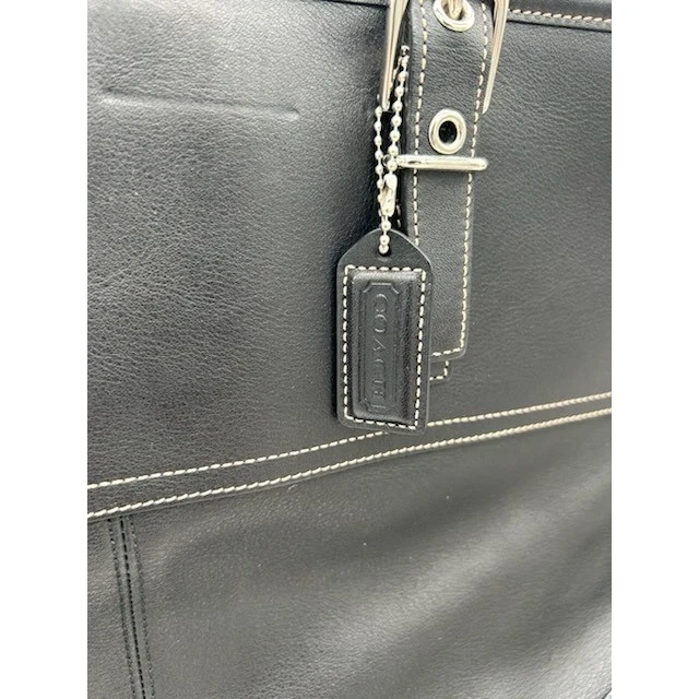 Classic black Coach Gallery Tote, a timelessly stylish and functional handbag. Featuring clean lines and sophisticated details, this versatile tote offers a spacious interior perfect for carrying everyday essentials. Accented with silver-tone buckle details on the straps and front pocket, the bag provides a subtle touch of elegance. Inside, you’s find multiple pockets for organization, including a zip pocket and slip pockets. Ideal for work, travel, or weekend outings, this Coach tote effortlessly combines practicality with refined style.