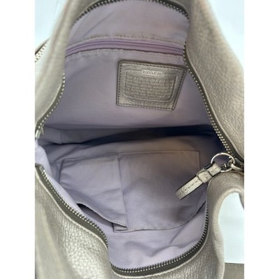 Coach Leather Shoulder Bag Purse Hobo Satchel Gray Silver Accents 11×12″