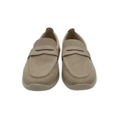 Tan mesh slip on loafers with penny loafer styling. These shoes offer a comfortable and stylish option for everyday wear. The breathable mesh construction provides excellent ventilation, while the slip-on design ensures easy wearability. The refined penny loafer detailing adds a touch of classic sophistication. Perfect for casual outings, office wear, or travel.