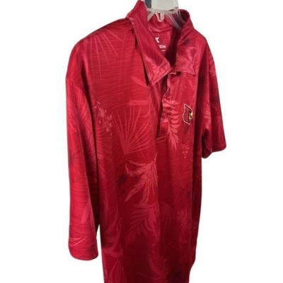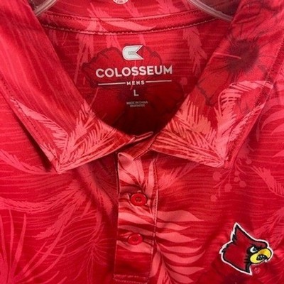 Excellent condition! Colosseum Louisville Cardinals polo shirt in red featuring a vibrant floral print. Embroidered team logo on the chest adds a touch of team spirit. Perfect for game days or casual wear.