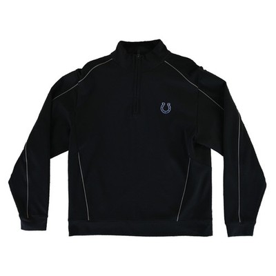 This Cutter & Buck CB DryTec quarter-zip pullover measures 23.5 inches in length, has a sleeve length of 21 inches, and is 20 inches pit-to-pit when laid flat. This performance layer is constructed from moisture-wicking and breathable polyester fabric, featuring a textured waffle-knit paneling on the sides and sleeves for enhanced ventilation. Grey contrast piping accents the shoulders and sleeves, while the mock neck and ribbed cuffs provide a secure fit suitable for active wear or game day.