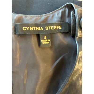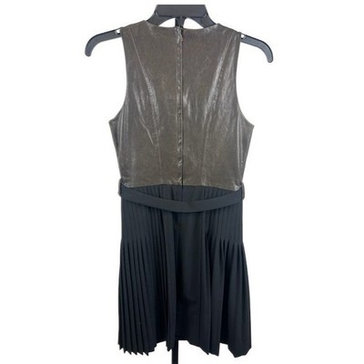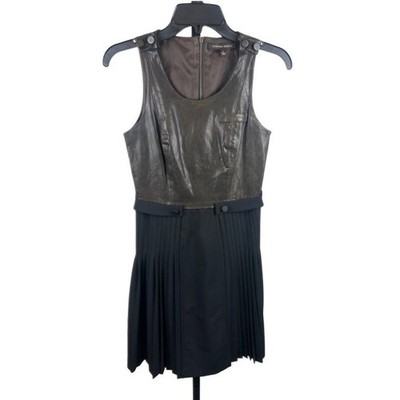 Keywords: Cynthia Steffe dress, leather dress, pleated dress, sleeveless dress, black dress, wool blend dress, size 2, cocktail dress, party dress, womens dress, designer dress, brown dress, modern dress