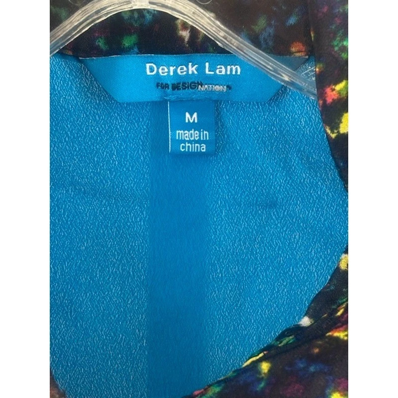 Embrace vibrant artistry with this Derek Lam for DESIGNATION shirt dress, a wearable masterpiece that commands attention. Its captivating abstract print, a kaleidoscope of rich blues, greens, yellows, and reds against a deep navy background, dances across the fabric, creating a visually stunning effect. Bold cobalt blue accents on the collar, placket, and cuffs provide a striking contrast, elevating the design with a modern, polished flair. Crafted for effortless style, this dress transitions seamlessly from a chic daytime look paired with sandals to an evening ensemble with heels and statement jewelry, perfect for brunch with friends or a sophisticated gallery opening.
