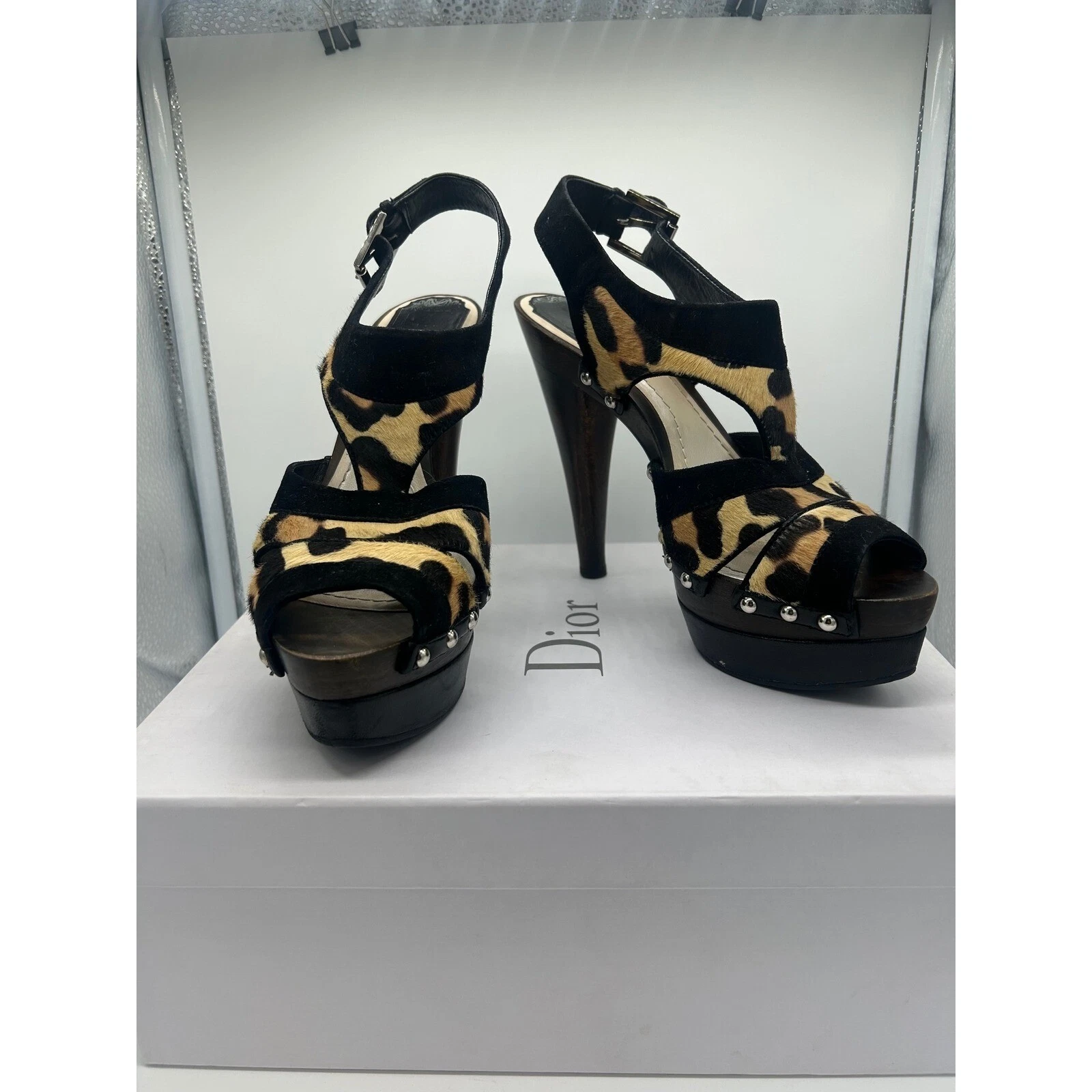 Dior Leopard Print Heels Suede Leather Platform Sandals Size 38 $1,295