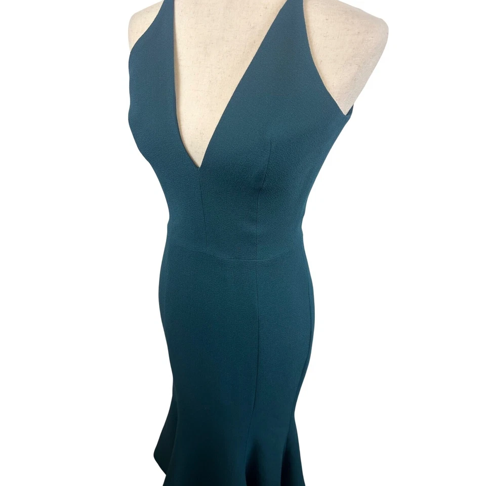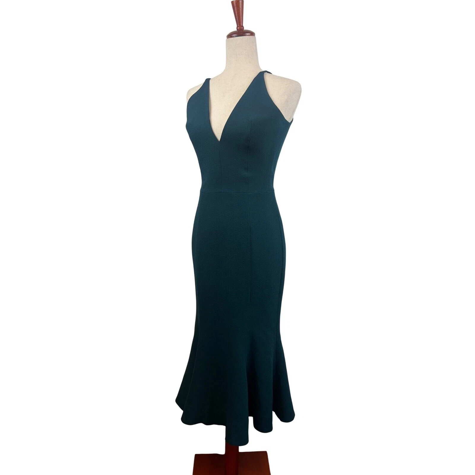Sculptural elegance defines this stunning dress, ready to make a statement at your next special event. The deep V-neckline exudes confidence, while the fitted bodice gracefully flows into a flattering mermaid silhouette. The dress is fully lined and features a concealed back zipper for a seamless fit. The rich, solid color adds a touch of sophistication, making it a versatile choice for any occasion. Perfect for a cocktail party, wedding reception, or a formal dinner, this dress will ensure you turn heads with its timeless appeal.