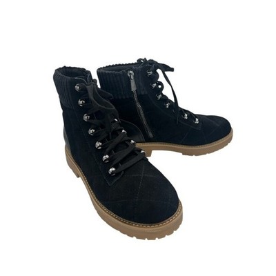 Keywords: Easy Spirit, ankle boots, black boots, quilted boots, lace up boots, lug sole boots, winter boots, casual boots, comfortable boots, fashion boots, women's boots, size 8.5, suede boots
