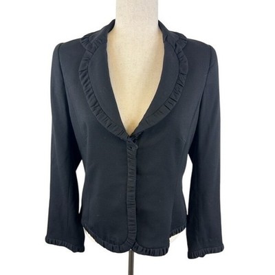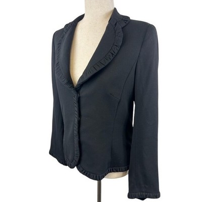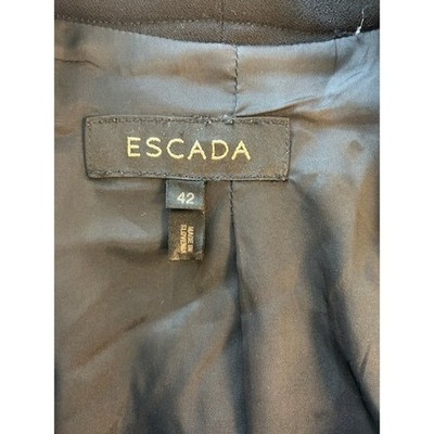 Keywords: Escada, blazer, jacket, ruffle trim, black blazer, wool blend, womens blazer, size 42, career jacket, formal wear, designer blazer, elegant jacket
