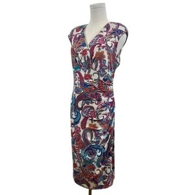FLATTERING Ralph Lauren Paisley Print Dress V-Neck Sleeveless Sheath Size 16