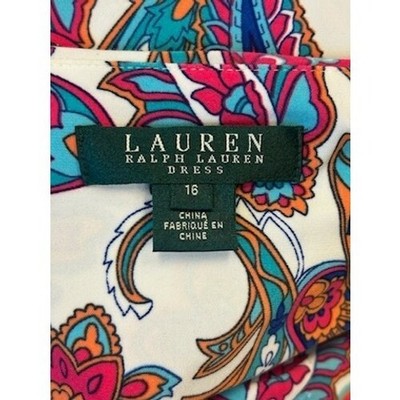 Keywords: Lauren Ralph Lauren dress, paisley dress, sheath dress, sleeveless dress, v-neck dress, size 16, women's dress, multicolored dress, bohemian dress, party dress, summer dress, casual dress, midi dress, classic dress