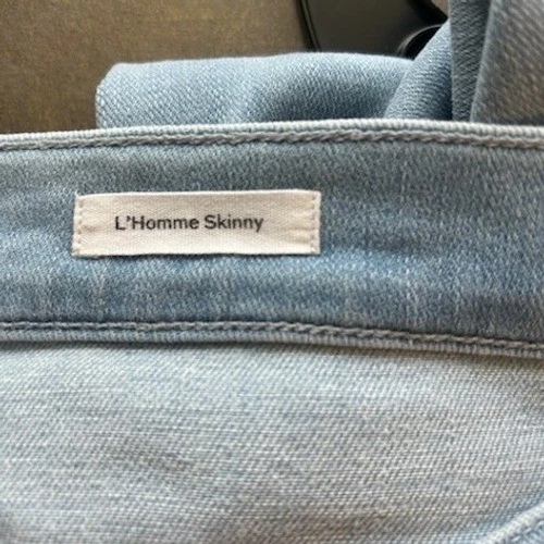 Elevate your denim collection with these FRAME L’Homme Skinny jeans. A modern take on a classic silhouette, these jeans offer a sleek and streamlined fit that flatters the figure. The light wash denim exudes a relaxed, lived-in vibe, perfect for creating effortlessly stylish looks. The subtle fading and whiskering add depth and character, while the comfortable stretch fabric ensures all-day wearability. These jeans are ideal for casual outings, weekend adventures, or simply adding a touch of sophistication to your everyday wardrobe.
