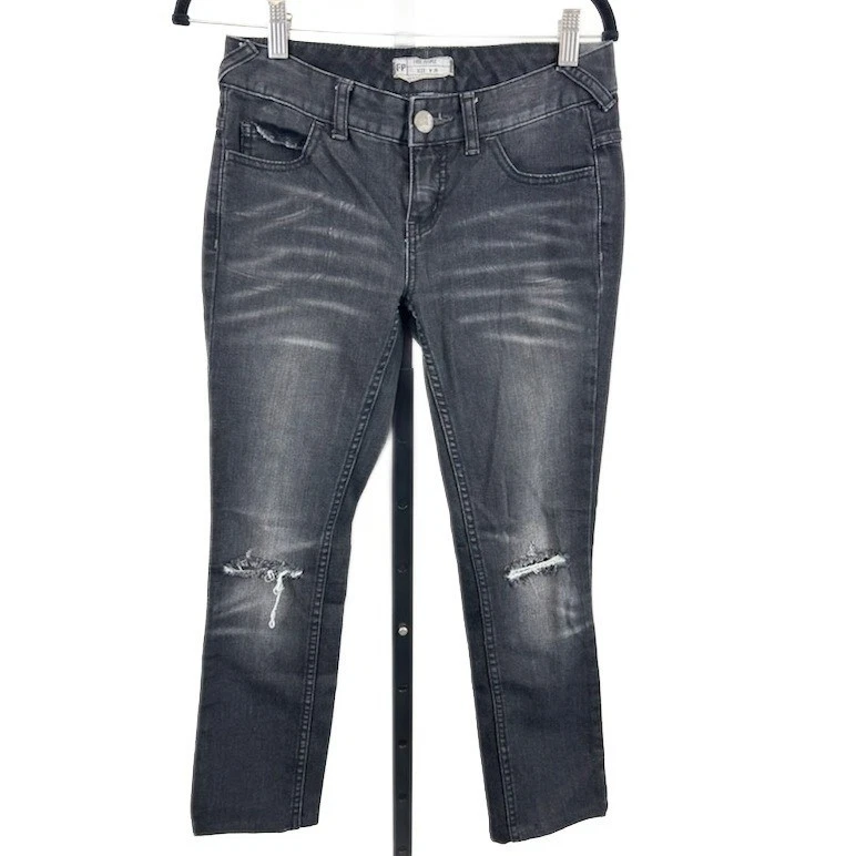 Style: Skinny Department: Women Fabric Wash: Charcoal Wash Waist Size: 26 in Type: Jeans Accents: Button, Zipper Features: Distressed, Pockets Fit: Slim Pattern: Solid Rise: Mid (8.5-10.5 in) Fabric Type: Denim Material: Cotton Blend, Spandex Closure: Button, Zip Theme: Grunge Season: Fall, Spring, Summer, Winter