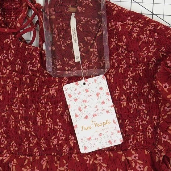 Be the first to review “Free People Smocked Blouse Women’s Size XS Burgundy Floral Ruffle Mock Neck”