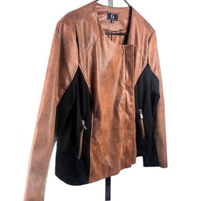 Excellent condition! This G by Giuliana moto jacket blending faux leather is lightweight and measures 25 inches in length, has a 24 inch sleeve length and is 22 inches pit to pit laid flat. This jacket features an asymmetrical zip front closure, creating a modern and edgy look. Two zippered pockets add both function and flair. Perfect for a night out or adding a chic layer to a casual outfit.