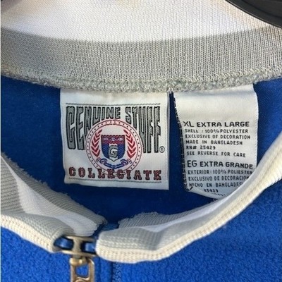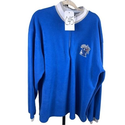 This Genuine Stuff Collegiate fleece pullover sweatshirt in royal blue measures 32 inches in length, with a 25 inch sleeve length and is 26 inches pit to pit laid flat. Showcasing the UK Wildcats logo. This quarter-zip top features a comfortable fleece fabric and a classic collegiate design perfect for any fan. Ideal for game days, casual outings, or everyday wear.