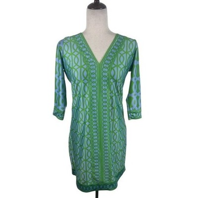 Gretchen Scott Womens Dress Blue Green Geometric Stretch 3/4 Sleeve Size XS
