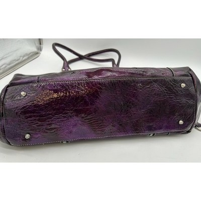Keywords: Guitars 1964, purple tote bag, patent leather bag, shoulder bag, zipper detail, silver hardware, designer handbag, Y2K fashion, vintage style, casual tote, everyday bag, shopping tote, travel bag, unique tote