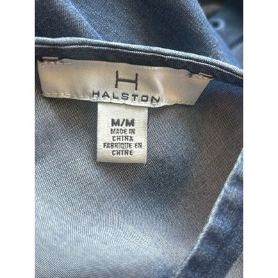 Denim dreams come true with this Halston dress, a versatile piece that effortlessly blends comfort and style. The dress features a classic round neckline and long bell sleeves, adding a touch of bohemian flair. The back showcases a unique criss-cross design, offering a peek of skin and a modern twist. Imagine yourself strolling through a sun-drenched farmer's market, attending a casual brunch with friends, or enjoying a relaxed evening at a rooftop bar, all while exuding effortless chic in this denim dress.