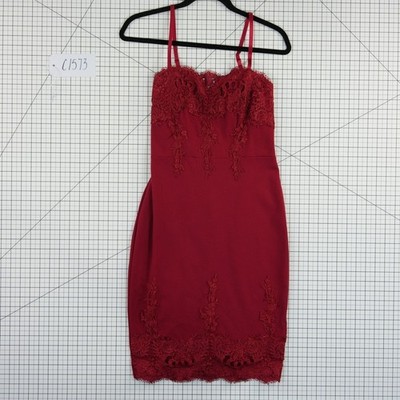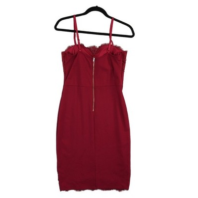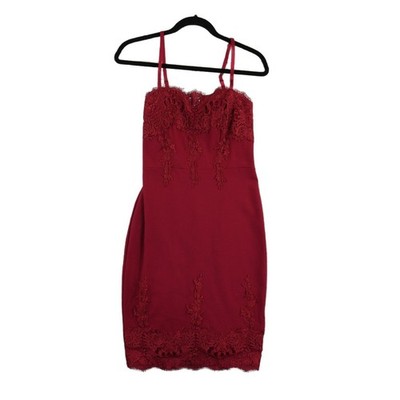 Haute Monde Lace Fitted Slip Dress Bodycon Women’s Size Large Burgundy Spaghetti