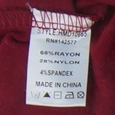 Material: 68% Rayon, 28% Nylon, 4% Spandex