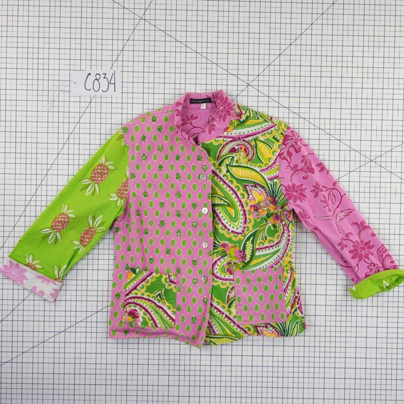 Haven Bleu Jacket Women’s Size Large Pink Lime Green Patchwork Paisley Top Coat