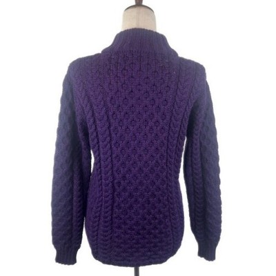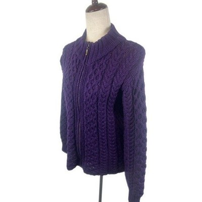 Inis Crafts Merino Wool Purple Cable Knit Cardigan Sweater Womens Size Medium