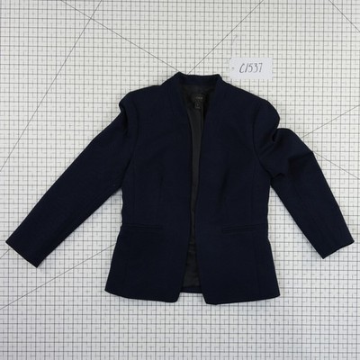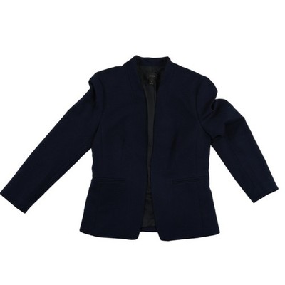 Excellent Condition, looks like new! J.Crew open-front blazer offers a sophisticated, minimalist silhouette with a modern collarless design. Crafted from a comfortable viscose blend with a touch of stretch, this structured jacket features clean lines, welt pockets, and a fully lined interior. The deep navy hue and tailored fit make it a versatile staple for professional wear or elevating a casual ensemble.