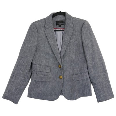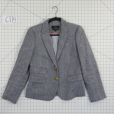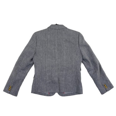 Excellent condition, like new! Classic tailored blazer in a sophisticated blue and white herringbone pattern offers a timeless addition to any professional wardrobe. Crafted from a breathable linen and cotton blend, this Dalton model features a structured silhouette with notch lapels and a two-button front closure accented by gold-tone crest buttons. The interior is fully lined with a crisp blue and white stripe fabric, finished with a signature red piping detail. Functional flap pockets and buttoned cuffs complete this polished, preppy aesthetic.