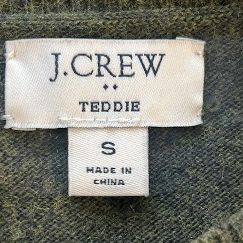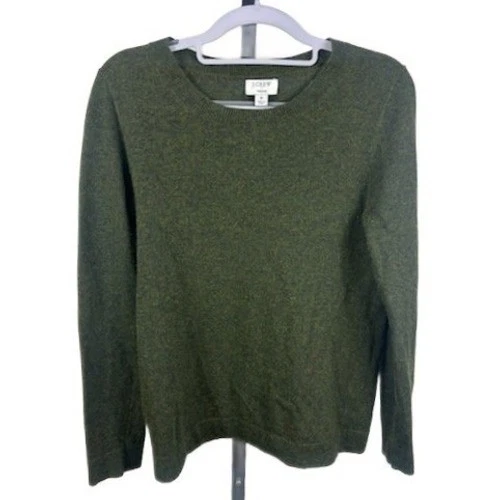 J Crew Teddie crewneck sweater in a marled green hue. This versatile knit is perfect for layering or wearing on its own. Ideal for casual outings or comfortable office wear.