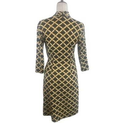 J.McLaughlin Black Gold Lattice Bamboo Faux Wrap 3/4 Sleeve Dress Size XS